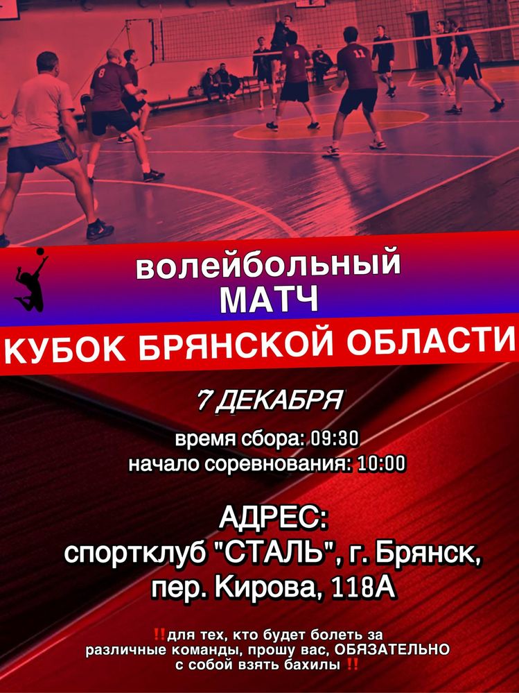 🏆 Добрый день! 7 декабря будет проводиться Кубок по Брянской области среди глухих и слабослышащих по классическому волейболу.
