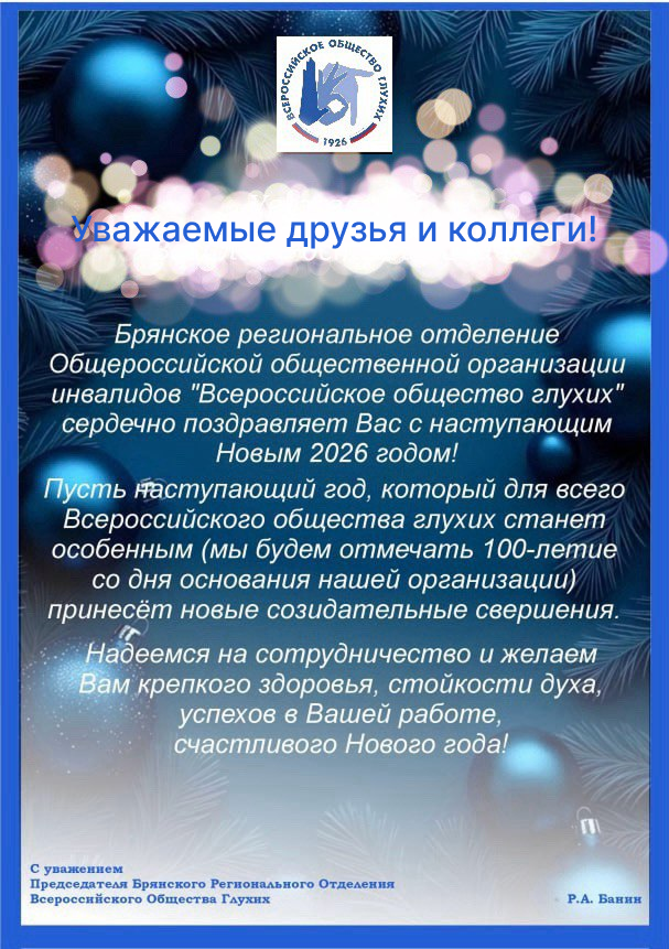 💙От имени Брянского регионального отделения ВОГ поздравляем вас с Новым годом! Пусть этот праздник принесёт в ваши дома радость, уют и счастье. Желаем, чтобы в Новом году сбывались самые заветные мечты,появлялись новые интересные возможности и всегда находились силы для воплощения идей.