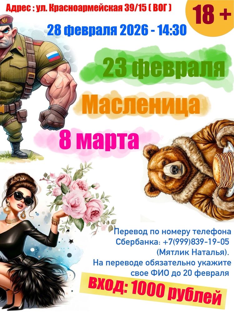 🆗Что будет 28 февраля? Будет мероприятие, посвященное 23 февраля, Масленице и 8 марта.