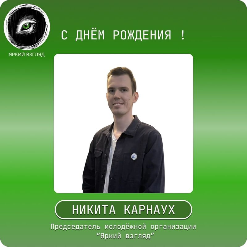 В этот прекрасный день хотим поздравить нашего председателя молодёжной организации "Яркий взгляд" — Карнауху Никиту Николаевича